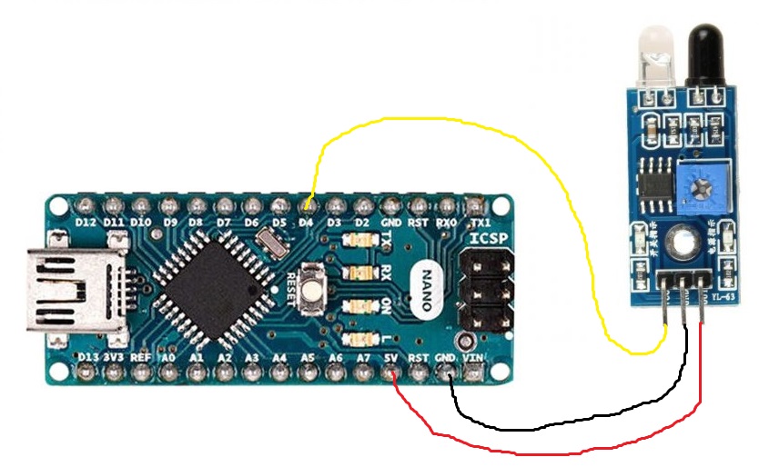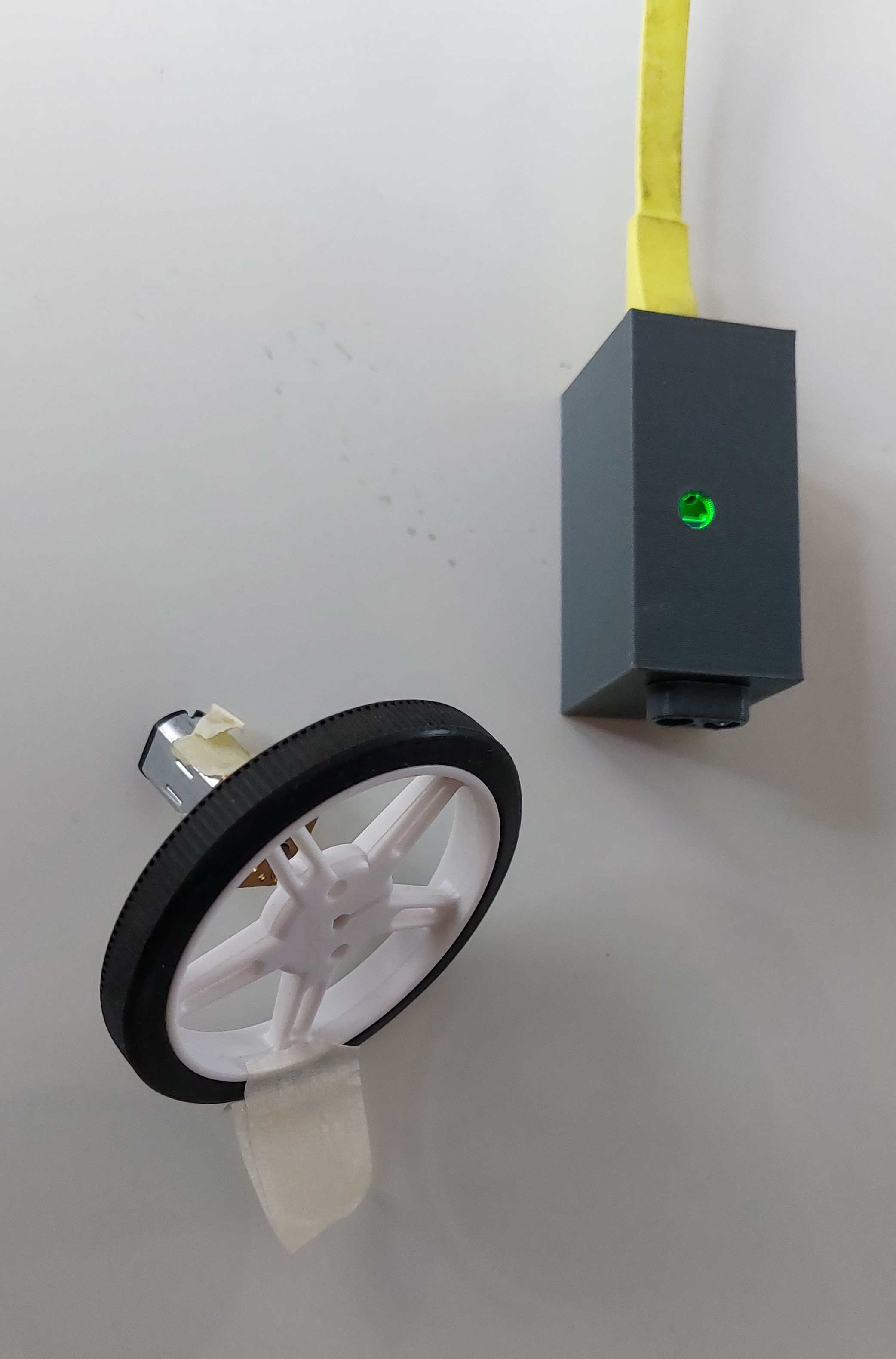 Avec l'alimentation on fait tourner la roue avec son "drapeau" qui passe devant le capteur.